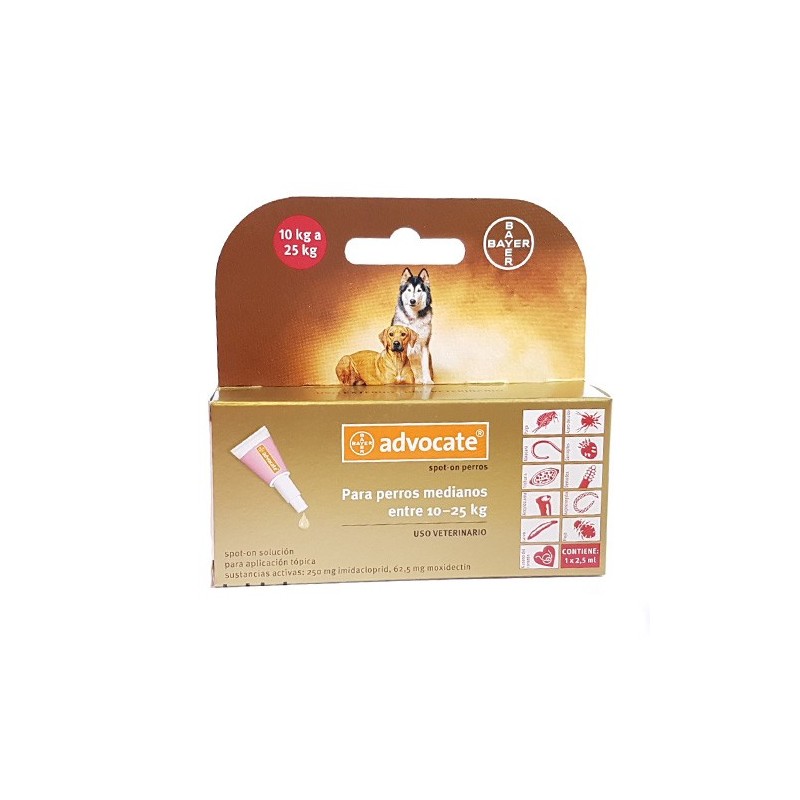 Pipeta Indicada para la prevención y tratamiento de las infestaciones por pulgas, piojos, ácaros de las sarna otodéctica, sarcóptica y demodéctica y el ácaro de pelaje o caspa andante y los vermes intestinales.