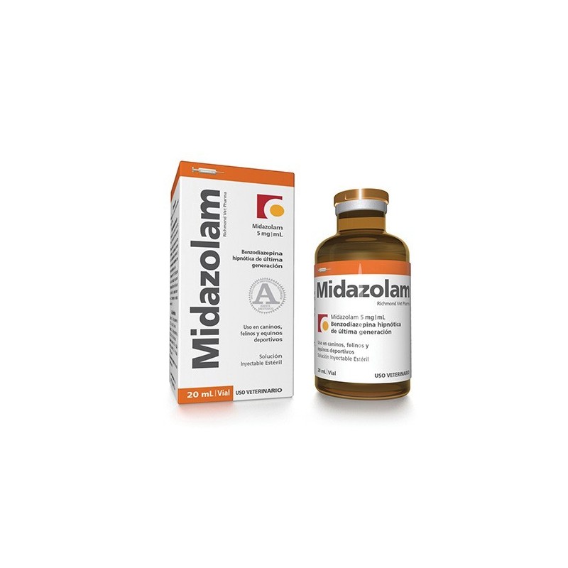 Es un tranquilizante menor benzodiacepínico en solución acuosa estéril inyectable a base de midazolam. Presenta rápido comienzo de acción, que no produce cambios significativos en los parámetros hemodinámicos y respiratorios. Se puede mezclar con otras drogas (por ejemplo: ketamina) y la acumulación es mínima después de repetidas dosis. Caninos y felinos.